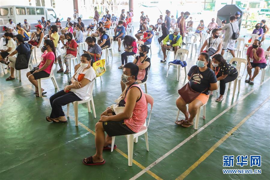 4月17日,在菲律宾首都马尼拉的一个菜市场,戴着口罩的人们坐着排队,等候购物并保持社交距离。 菲律宾卫生部16日通报,该国累计新冠确诊病例5660例,累计死亡362例,累计治愈435例。 新华社发(乌马利摄)