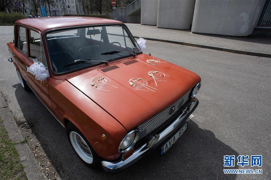 这是4月17日在立陶宛维尔纽斯婚姻登记处前拍摄的婚车。新华社发(阿尔弗雷达斯·普里亚迪斯 摄)