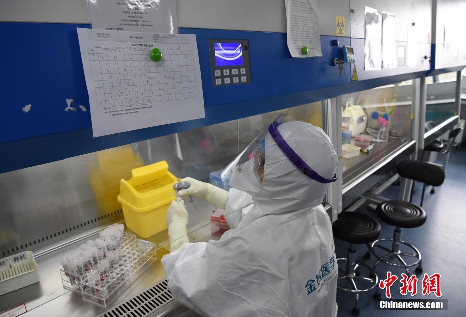 实验室工作人员准备加样,并认真核对作业中的相应步骤。中新社记者 侯宇 摄