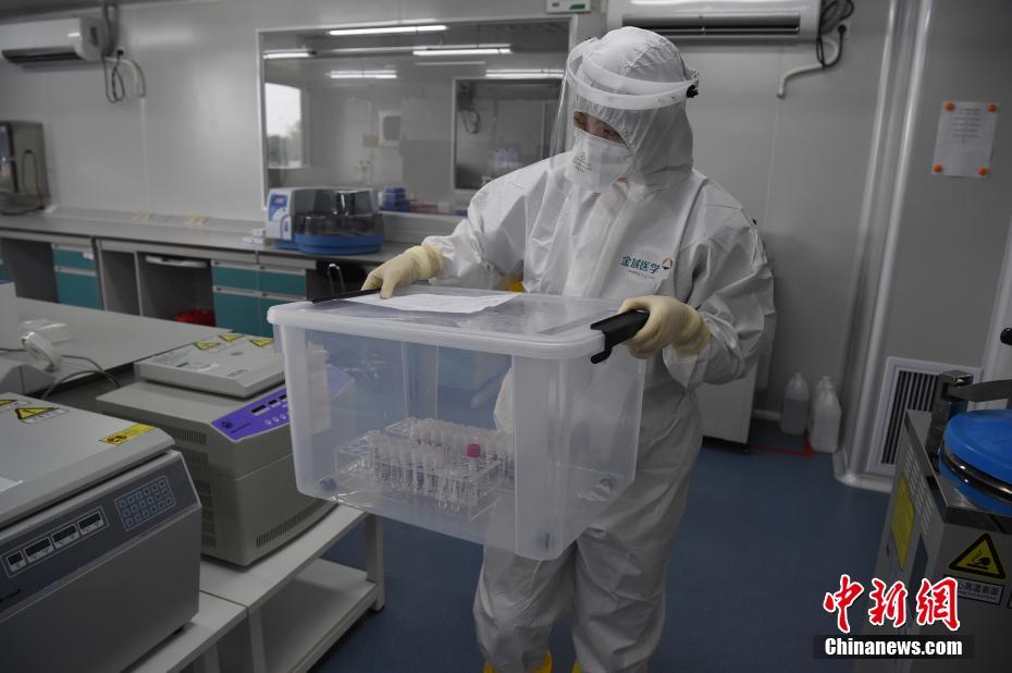 工作人员取到经预处理后需进行新冠病毒核酸检测的样本。中新社记者 侯宇 摄