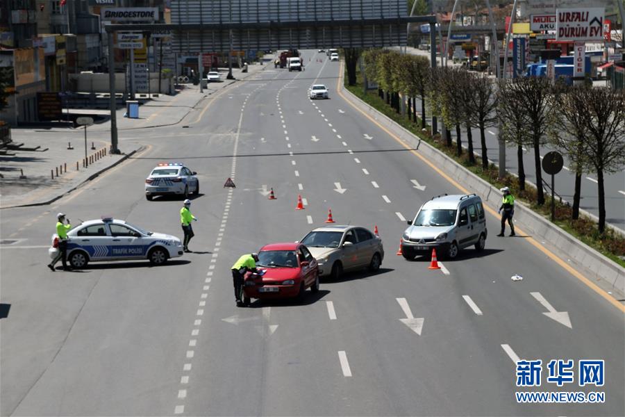 4月18日,在土耳其安卡拉,警察检查道路上的车辆。新华社发(穆斯塔法·卡亚摄)