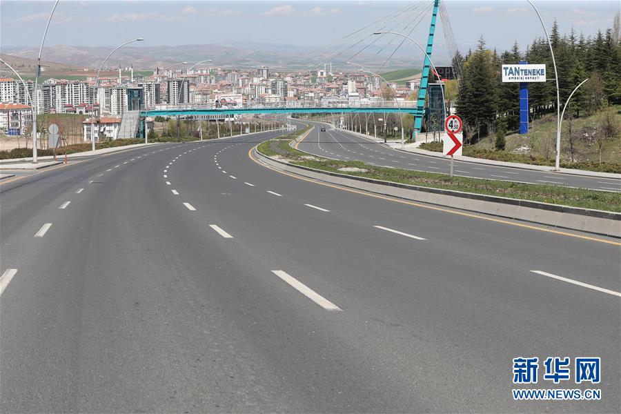 4月18日,在土耳其安卡拉,道路上车辆寥寥。土耳其本周末的“居家令”从18日0时到19日24时实施。土卫生部长科贾17日表示,土耳其的病例增长速度已出现放缓迹象,预计7到10天后疫情将迎来拐点。他说,土耳其在禁止65岁以上老人出行后,确诊病例中65岁以上的患者比例从35%下降到18%,因此敦促民众继续“严格遵守社交距离和隔离规则”。新华社发(穆斯塔法·卡亚摄)