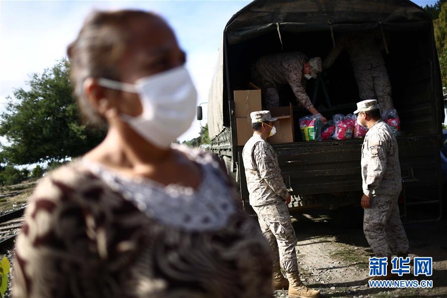 4月18日,在智利南部的奇廉市,士兵向贫民社区居民发放抗疫物资。 智利纽布莱大区的奇廉市虽然已实施近三周的全面隔离,但新冠疫情仍在持续蔓延中。智利卫生部长马纳利奇18日在新闻发布会上说,奇廉已经成为智利疫情“最令人担心”的城市之一。 新华社发
