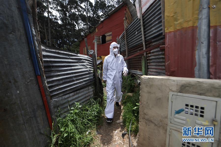 4月19日,在哥伦比亚首都波哥大,志愿者走访低收入社区。为应对新冠疫情,哥伦比亚政府已将全国强制预防性居家隔离政策延长至4月26日23时59分,学校继续停课至5月末。 新华社发(约翰·帕斯摄)