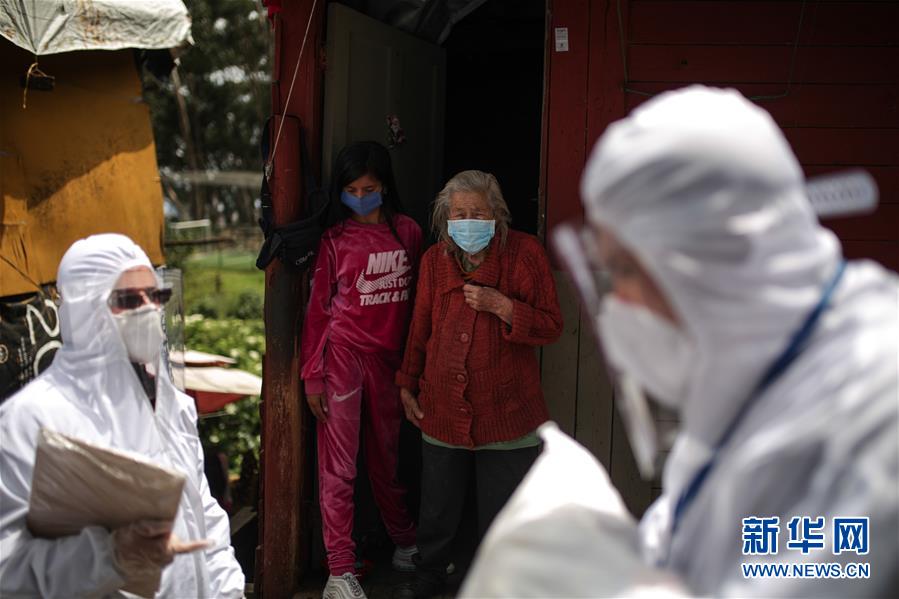 4月19日,在哥伦比亚首都波哥大,志愿者走访低收入社区。为应对新冠疫情,哥伦比亚政府已将全国强制预防性居家隔离政策延长至4月26日23时59分,学校继续停课至5月末。 新华社发(约翰·帕斯摄)