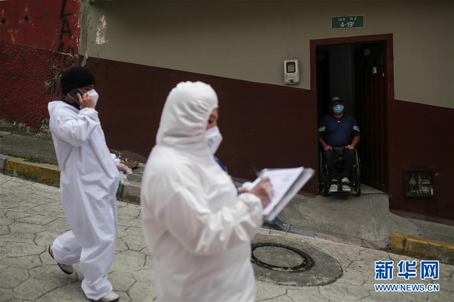 4月19日,在哥伦比亚首都波哥大,志愿者走访低收入社区。为应对新冠疫情,哥伦比亚政府已将全国强制预防性居家隔离政策延长至4月26日23时59分,学校继续停课至5月末。 新华社发(约翰·帕斯摄)