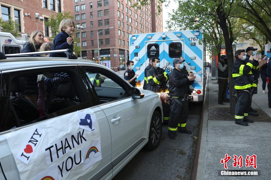 纽约社会各界医院门前鼓掌感谢医务工作者