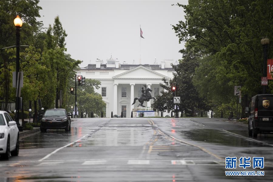这是4月23日在美国华盛顿拍摄的白宫前空荡荡的街道。 美国国会众议院23日投票通过一项总额约4840亿美元的援助法案,以增加对小企业贷款项目、医院和新冠病毒检测机构的拨款。该法案将交由美国总统特朗普签署成为法律。 新华社发(沈霆摄)