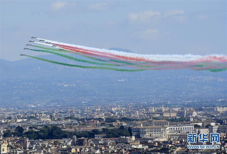 4月25日,意大利空军“三色箭”飞行表演队在罗马上空飞行,纪念意大利解放日。 当日,意大利在“封城”状态下纪念从法西斯统治下解放75周年,罗马和其他城市主要广场都未举行任何人群聚集活动。意大利民事保护部门25日发布的数据显示,意大利当天新增新冠死亡病例415例,为3月18日以来单日新低,累计死亡病例26384例。 新华社发