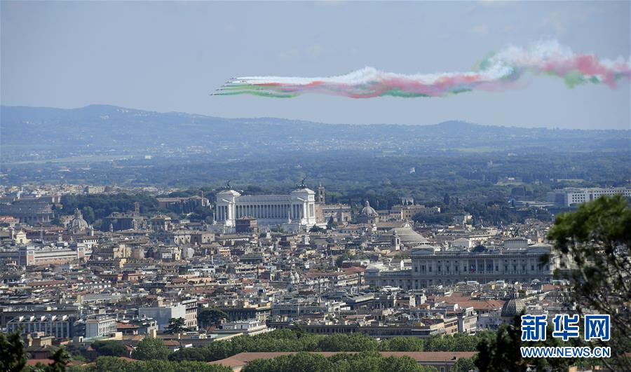 4月25日,意大利空军“三色箭”飞行表演队在罗马上空飞行,纪念意大利解放日。 当日,意大利在“封城”状态下纪念从法西斯统治下解放75周年,罗马和其他城市主要广场都未举行任何人群聚集活动。意大利民事保护部门25日发布的数据显示,意大利当天新增新冠死亡病例415例,为3月18日以来单日新低,累计死亡病例26384例。 新华社发