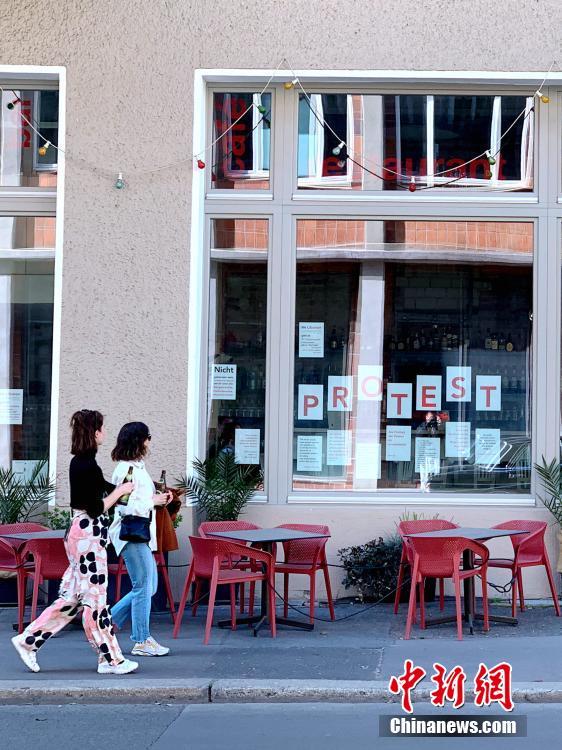 当地时间4月26日,德国柏林一家歇业的餐馆贴出“抗议”的字样。因受疫情影响严重,德国各地的餐饮业者连日来举行了多场抗议活动,呼吁当局明确允许其恢复堂食业务的时间表。中新社记者 彭大伟 摄