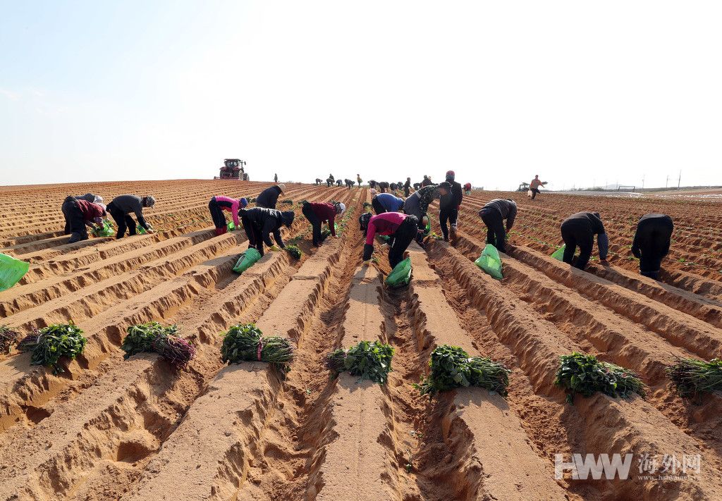 当地时间2020年4月26日,韩国京畿道利川市,当地农忙季节开始,农民们在田里栽种地瓜。(图源:东方IC)