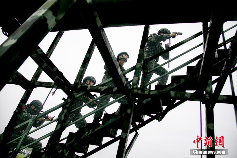 4月27日,武警桂林支队某中队展开一场居民地反劫持演练,一名“恐怖分子”持枪劫持一名人质逃至山林独立居民房内,负隅顽抗。特战队员采取多点突破、合围抓捕的战术,综合利用楼梯、水管、绳索和攀登车向“恐怖分子”所在楼层接近。趁恐怖分子于窗口观察情况之际,特战队员果断发起突击,一举将其抓获。据悉,本次演练不打招呼,不设预案,重点强化特战队员快速机动、战术协同和综合制敌能力,进一步提高特战队员遂行反恐处突任务的实战能力。张宸硕 摄