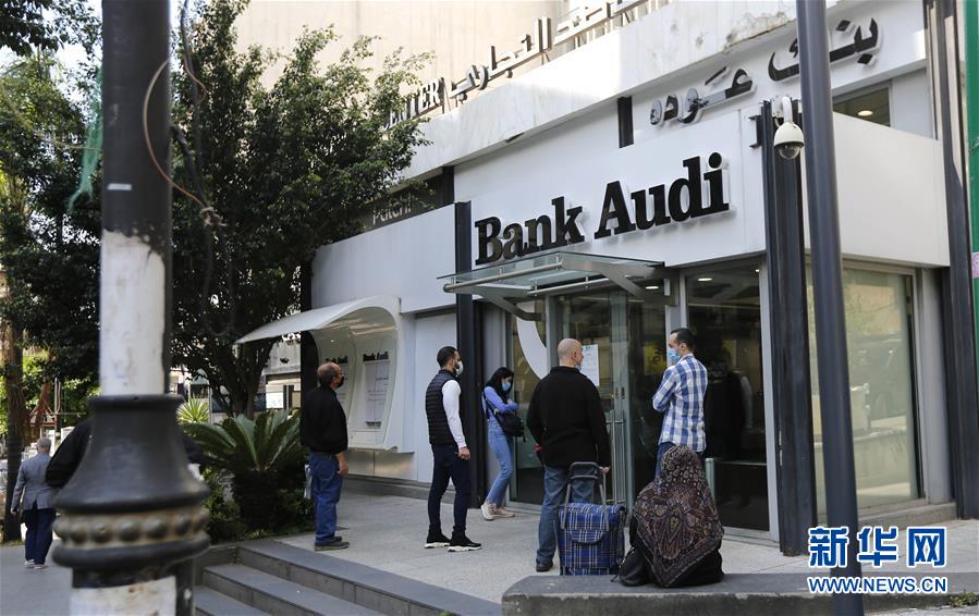4月27日,黎巴嫩首都贝鲁特的一家银行开门营业。 按照政府计划,黎巴嫩自4月27日开始分阶段逐步复工复产。 新华社发(比拉尔·贾维希 摄)