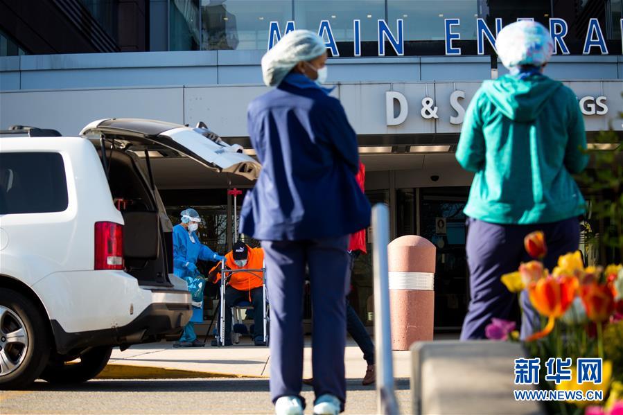 4月28日,在美国纽约一家医院外,医护人员送患者出院。 美国约翰斯·霍普金斯大学28日发布的新冠疫情最新统计数据显示,美国累计新冠确诊病例超过100万例。 新华社发(郭克摄)