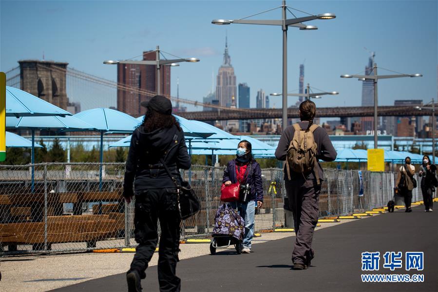 4月28日,在美国纽约,人们戴着口罩出行。 美国约翰斯·霍普金斯大学28日发布的新冠疫情最新统计数据显示,美国累计新冠确诊病例超过100万例。 新华社发(郭克 摄)