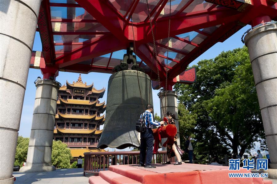 4月29日,武汉黄鹤楼景区重新开放。目前,景区不提供窗口售票,游客通过网络实名预约购票。黄鹤楼主楼部分开放,每半小时允许300名游客进入。 新华社记者 熊琦 摄