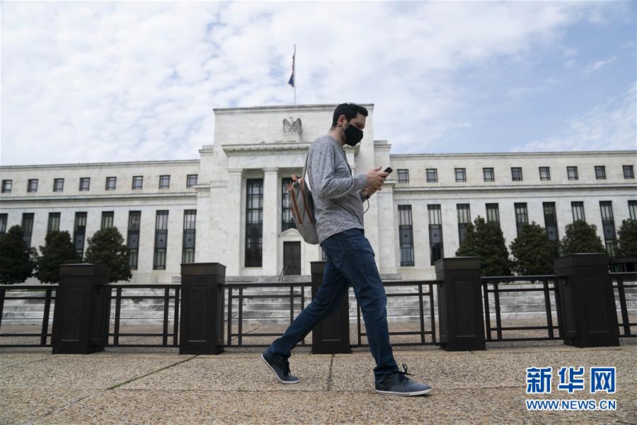 4月29日,在美国华盛顿,一名戴口罩的男子从美国联邦储备委员会大楼前走过。 美国联邦储备委员会29日宣布将联邦基金利率目标区间维持在零至0.25%的超低水平,同时警告新冠疫情对美国经济前景构成相当大的风险。 新华社记者刘杰摄