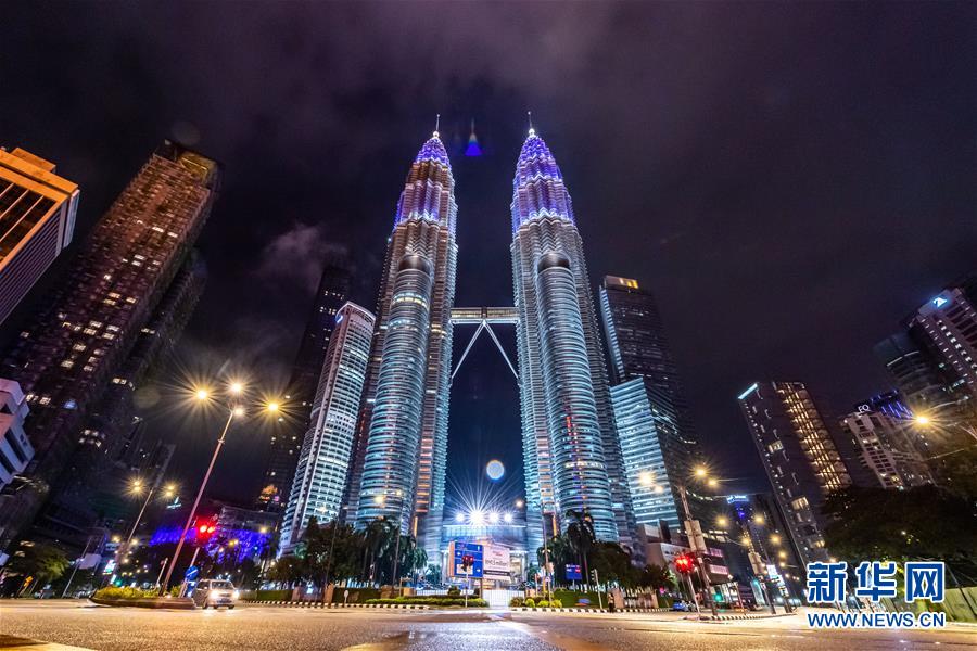 4月30日至5月3日晚间,吉隆坡和普特拉贾亚等地的标志性建筑将亮起蓝色灯光,向抗击新冠肺炎疫情的一线工作人员致敬。 新华社记者 朱炜 摄