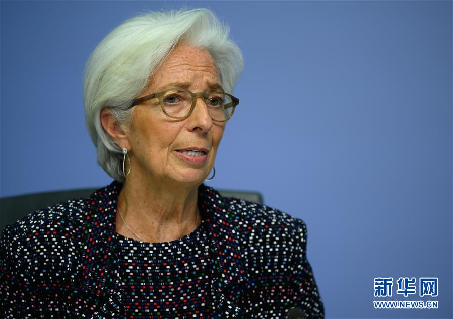 4月30日,在德国法兰克福的欧洲中央银行总部,欧洲央行行长拉加德在新闻发布会上介绍情况。 由于新冠疫情打击经济并增加不确定性,欧洲中央银行4月30日决定降低长期定向再融资操作利率,以加大对欧元区的流动性支持。 新华社发(欧洲中央银行供图)