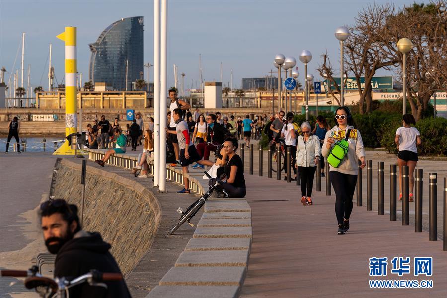 5月2日,市民在西班牙巴塞罗那博加特尔海滩锻炼身体。 根据西卫生部4月30日宣布的一项新规定,从5月2日起,全国“禁足令”将进一步放松,民众可每天短暂走出家门进行体育锻炼等活动,出门时段根据年龄段划分。 新华社发(胡安·戈萨摄)