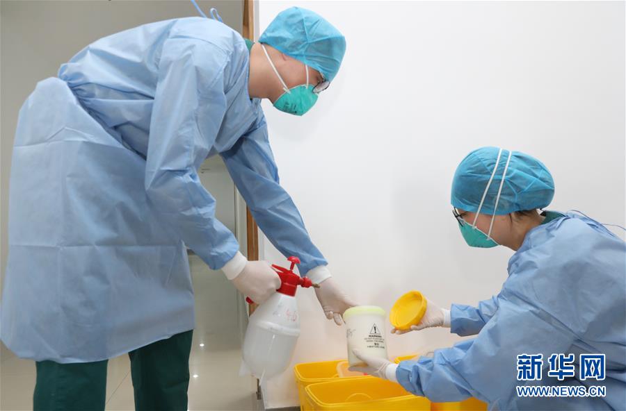 截至4月30日,实验室共检测新冠核酸标本16132份、新冠抗体1740份,检测流感样病例标本740份,检测住院肺炎标本475份……图为4月26日,江苏省南通市疾控中心病原微生物实验室的检测人员季霄雷(左)和郭陈对送样罐进行消毒。 新华社发(许丛军 摄)