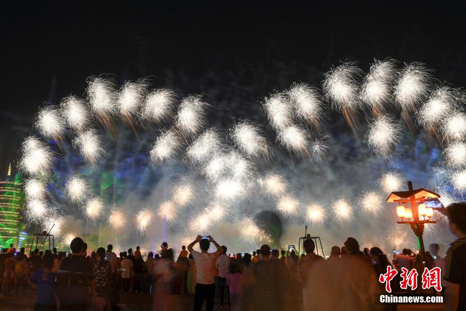 长沙古镇上演铁花焰火秀 流光溢彩美艳夜空