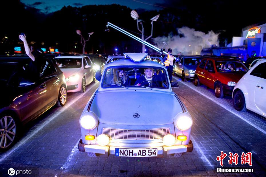 近日,德国下萨克森州许托夫,几百辆汽车有序停放在一处空地上,现场俨然一个大型“蹦迪”现场。随着闪烁的灯光和劲爆的音乐,民众在自己的车里狂欢。据悉,为了维持生计,一家舞厅想出汽车迪斯科的办法,每天吸引大批人开车前往,感受这种新型迪斯科。图片来源:ICphoto