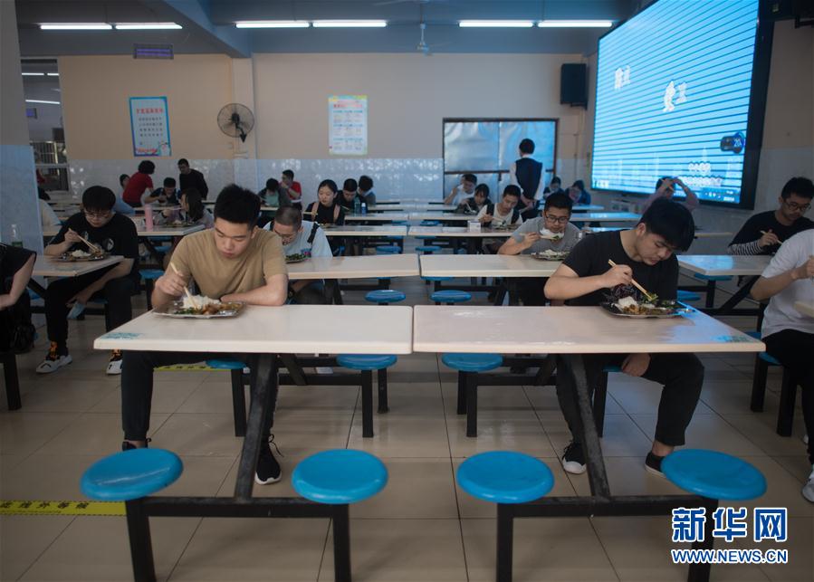 5月6日,武汉睿升学校的高三年级学生在食堂吃午餐。 当日,武汉首批121所学校高三年级正式复学,学生返校上课。据了解,开学前,所有校园均开展了卫生清洁和预防性消杀工作,所有学生返校前须进行健康检测。 新华社记者 肖艺九 摄