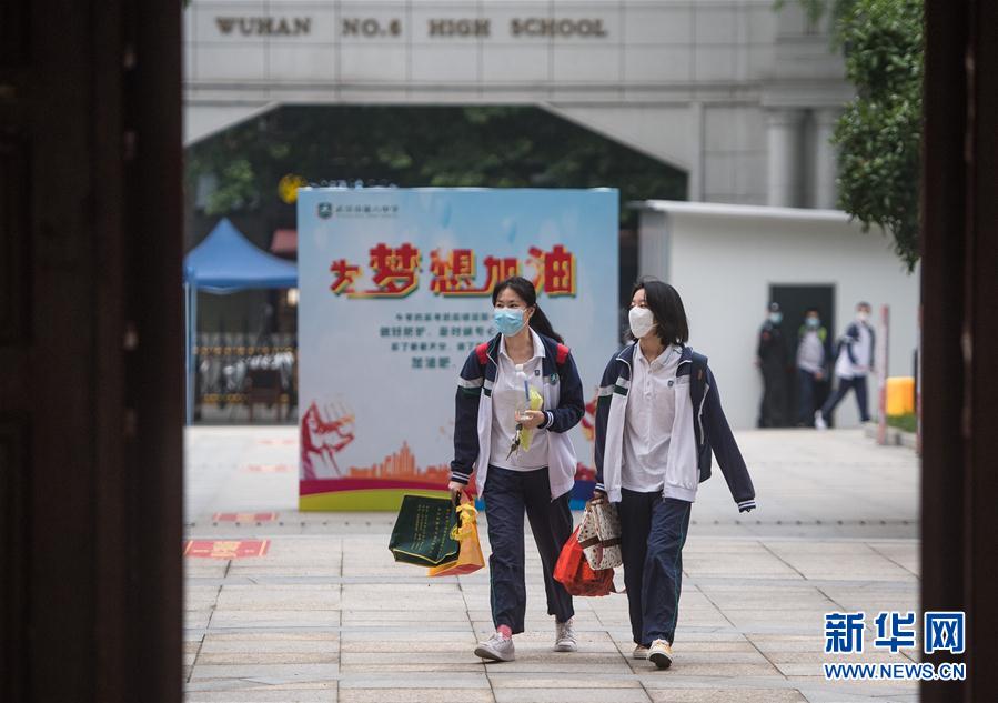 5月6日,武汉市第六中学的高三年级学生步入校园。 当日,武汉首批121所学校高三年级正式复学,学生返校上课。据了解,开学前,所有校园均开展了卫生清洁和预防性消杀工作,所有学生返校前须进行健康检测。 新华社记者 肖艺九 摄