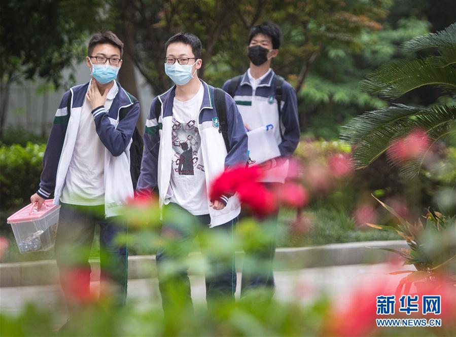 5月6日,武汉市第六中学的高三年级学生进入校园。 当日,武汉首批121所学校高三年级正式复学,学生返校上课。据了解,开学前,所有校园均开展了卫生清洁和预防性消杀工作,所有学生返校前须进行健康检测。 新华社记者 肖艺九 摄