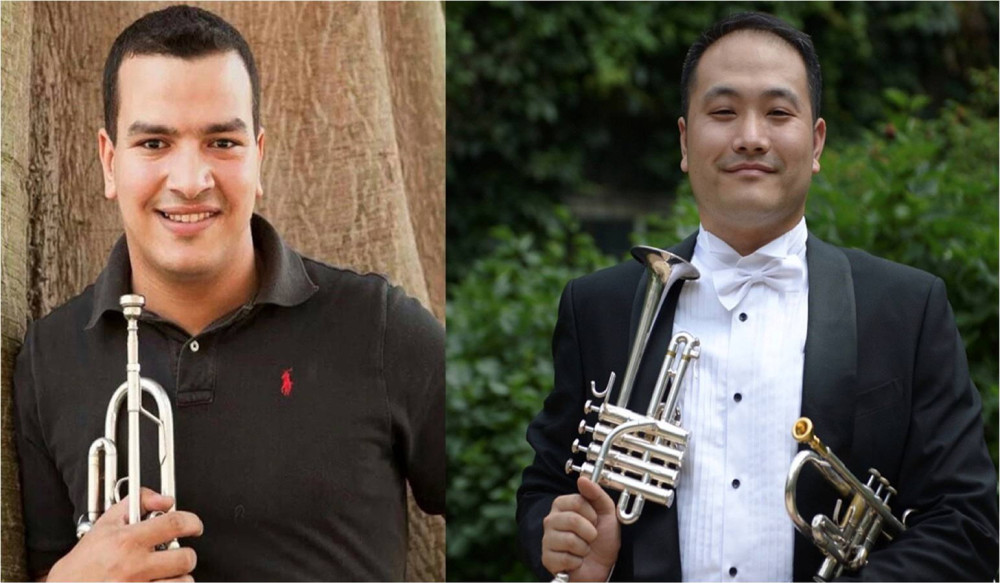 拼版图片:中埃两国小号乐手。中国驻埃及大使馆文化处供图