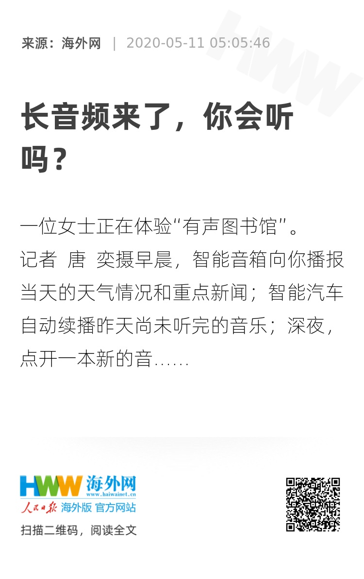 早晨,智能音箱向你播报当天的天气情况和重点新闻;智能汽车自动续播昨天尚未听完的音乐;深夜,点开一本新的音频有声书,慢慢进入梦乡……随着移动互联网发展和智能终端普及,与声音相关的内容正进入许多人的日常生活。