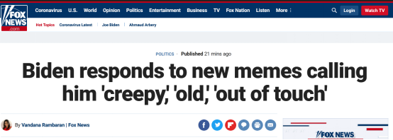 福克斯新闻说,拜登一直在适应数字领域,他在新冠疫情期间主持了一系列虚拟活动;并在自己的播客中与前民主党华裔竞选人杨安泽等嘉宾进行互动,以获得选民支持;他甚至还和美国队女球星梅根•拉皮诺一起在Instagram(社交媒体)上进行现场问答。