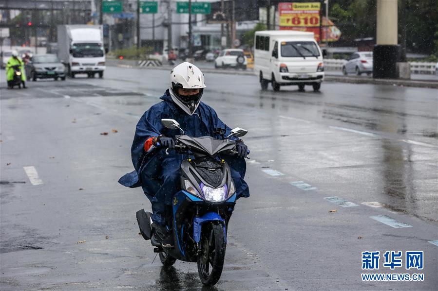 5月14日,在菲律宾马尼拉,市民在雨中骑行。 台风“黄蜂”14日登陆菲律宾东部,带去强风和强降水。菲律宾地方政府正在疏散数以万计居民,同时提防新冠病毒传播。 新华社发(乌马利摄)