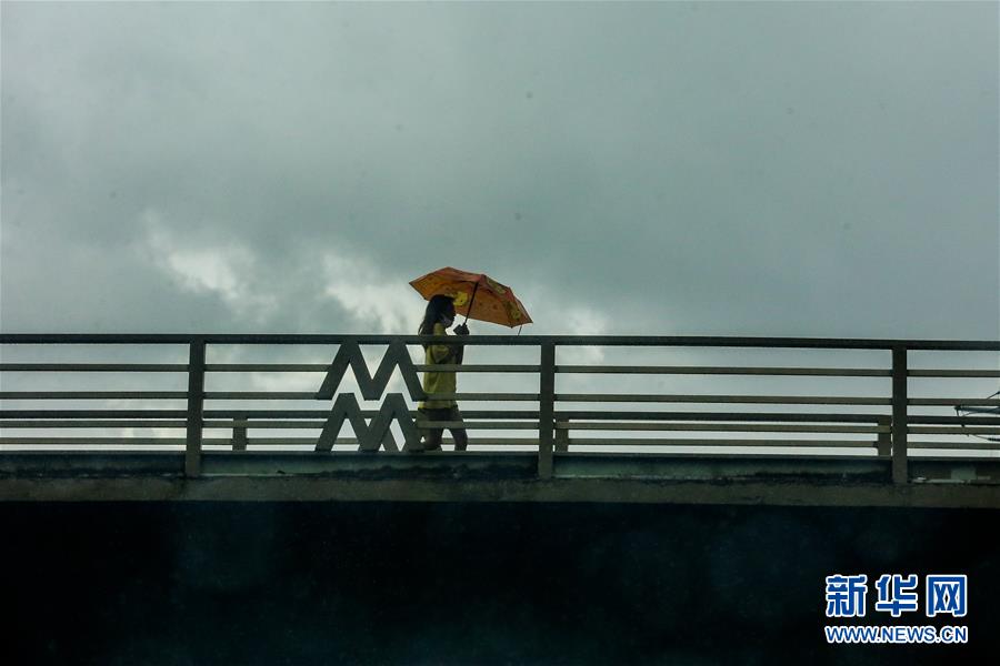5月14日,在菲律宾马尼拉,一名女子撑伞出行。 台风“黄蜂”14日登陆菲律宾东部,带去强风和强降水。菲律宾地方政府正在疏散数以万计居民,同时提防新冠病毒传播。 新华社发(乌马利摄)