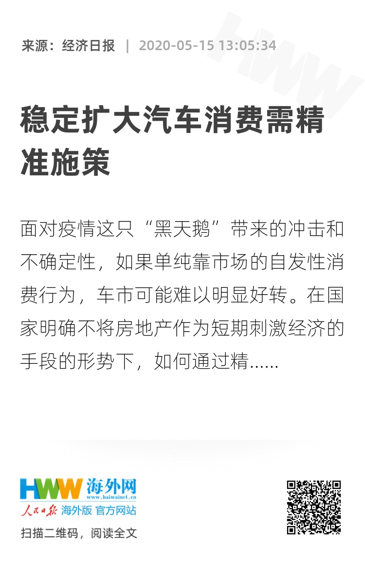 面对疫情这只“黑天鹅”带来的冲击和不确定性,如果单纯靠市场的自发性消费行为,车市可能难以明显好转。在国家明确不将房地产作为短期刺激经济的手段的形势下,如何通过精准施策,稳定和扩大汽车消费,加快推进汽车产业转型升级,不仅对经济社会发展具有战略意义,更具有较强的现实紧迫感