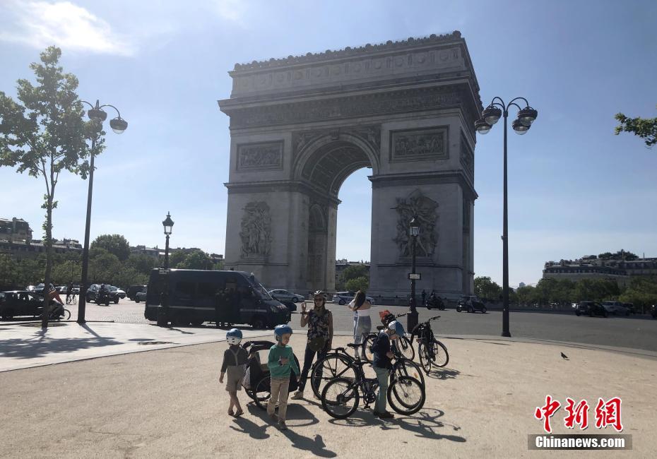 当地时间5月16日,法国迎来“解封”后的首个周末,在巴黎凯旋门前有民众驻足。中新社记者 李洋 摄