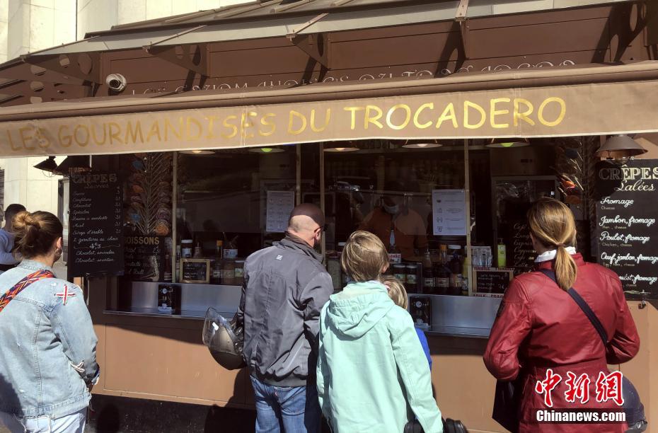 当地时间5月16日,法国迎来“解封”后的首个周末,巴黎景点小卖部恢复营业,吸引民众购买各种食品。中新社记者 李洋 摄