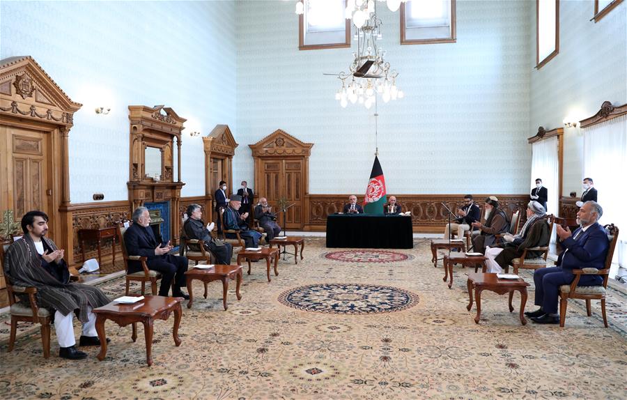 这是5月17日在阿富汗总统府拍摄的权力分配协议签署现场。 新华社发(阿富汗总统府供图)