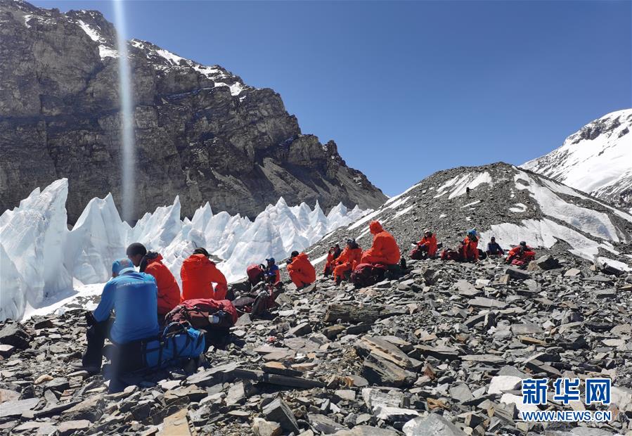2020珠峰高程测量登山队抵达海拔6500米的前进营地