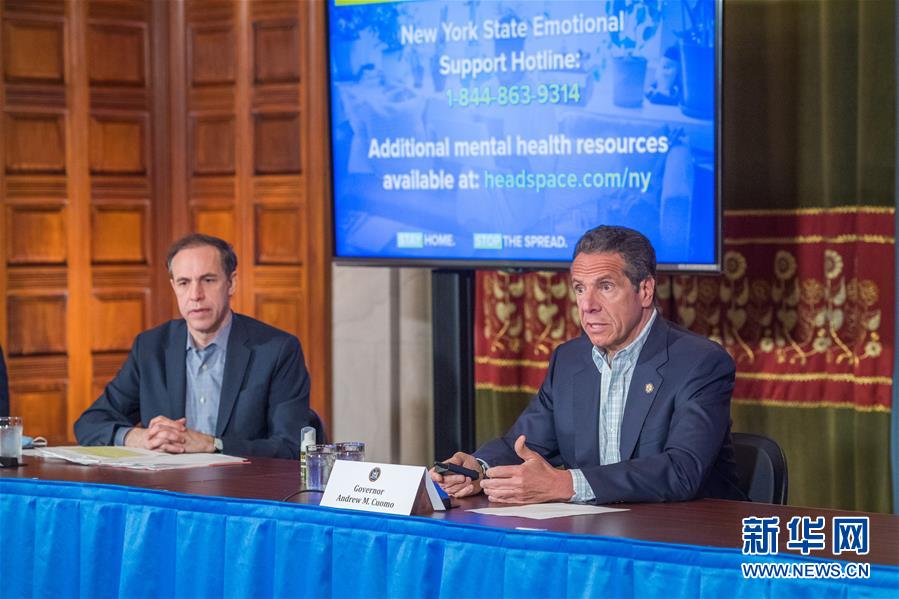 5月17日,科莫宣布纽约州新冠检测能力达到每天4万人次,并鼓励符合条件的居民接受检测。 新华社发(纽约州州长办公室供图 达伦·麦吉摄)