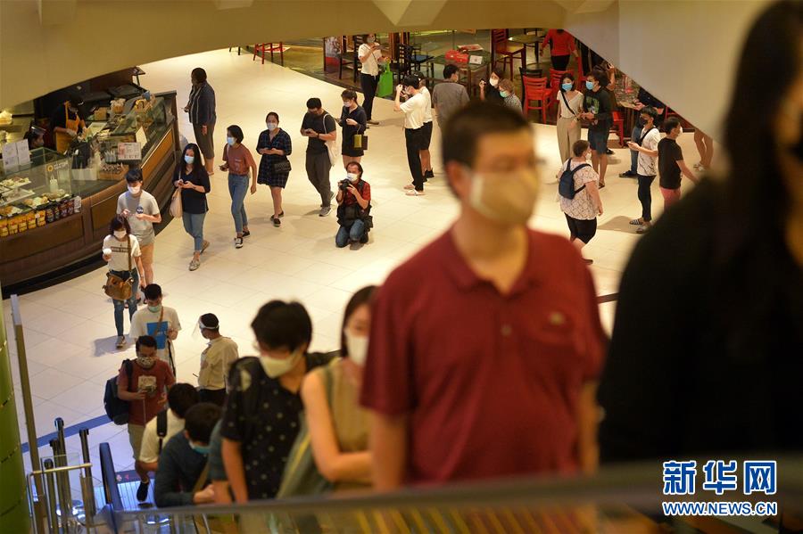 泰国政府15日宣布,于17日重新开放商场和室内餐厅,同时宵禁时间自17日起缩短一个小时,改为每日23时至次日早上4时。新华社发 (拉亨 摄)