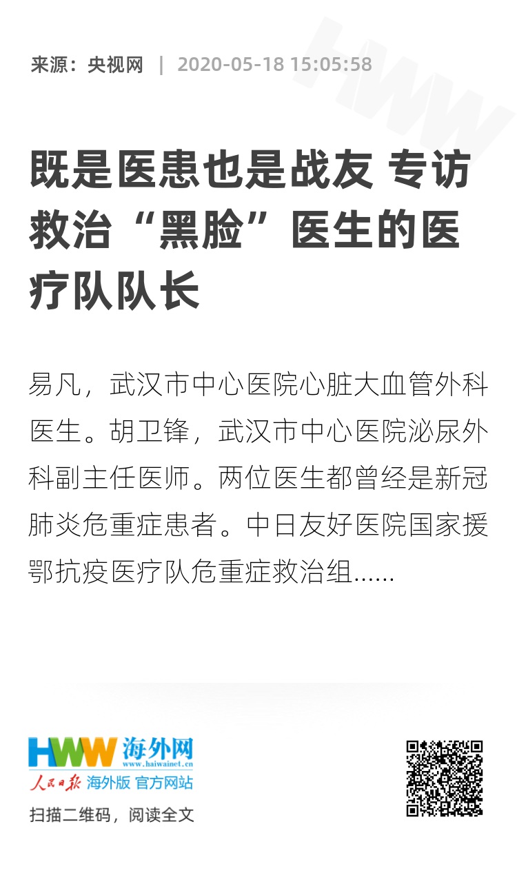 撤离之前的告别视频,打动了很多人。而因为两位医生患者的脸色发黑,更是引发了公众的极大关注。