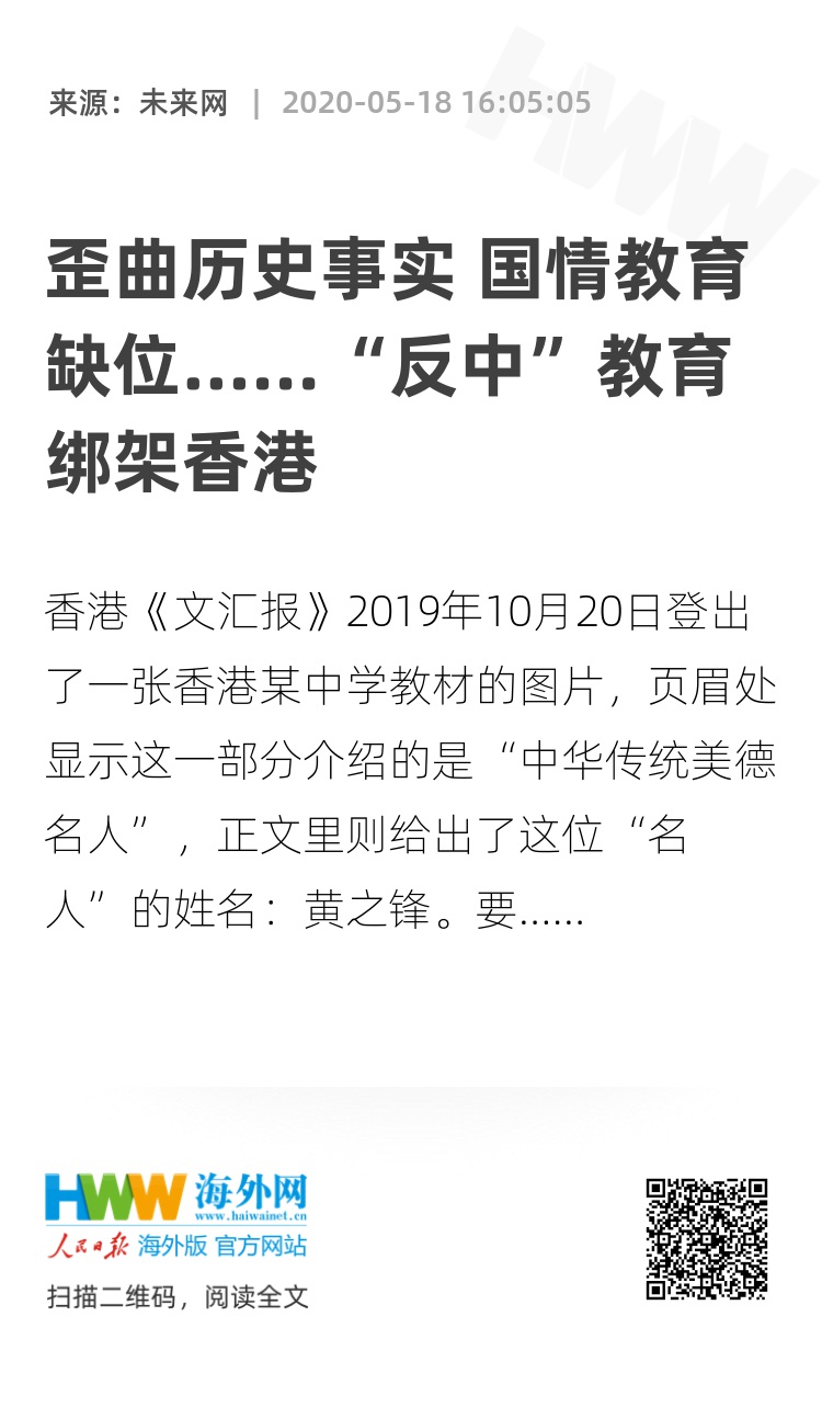 然而,居然有教材美化黄之锋!香港教育出现的严重问题可见一斑。