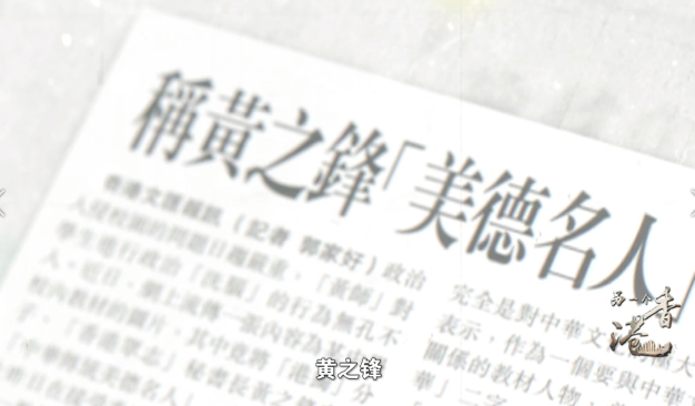 香港《文汇报》2019年10月20日登出了一张香港某中学教材的图片,页眉处显示这一部分介绍的是“中华传统美德名人”,正文里则给出了这位“名人”的姓名:黄之锋。