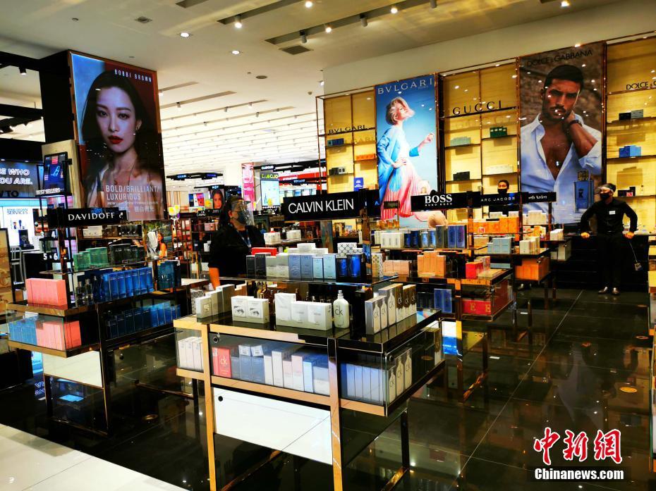 5月18日,是马尼拉结束62天的“强化性区隔离(ECQ)”,进入15天“改良性强化社区隔离(MECQ)”后的第一个工作日。图为菲律宾连锁商场SM马尼拉CBD马卡蒂店化妆品区,顾客稀少。 中新社记者 关向东 摄