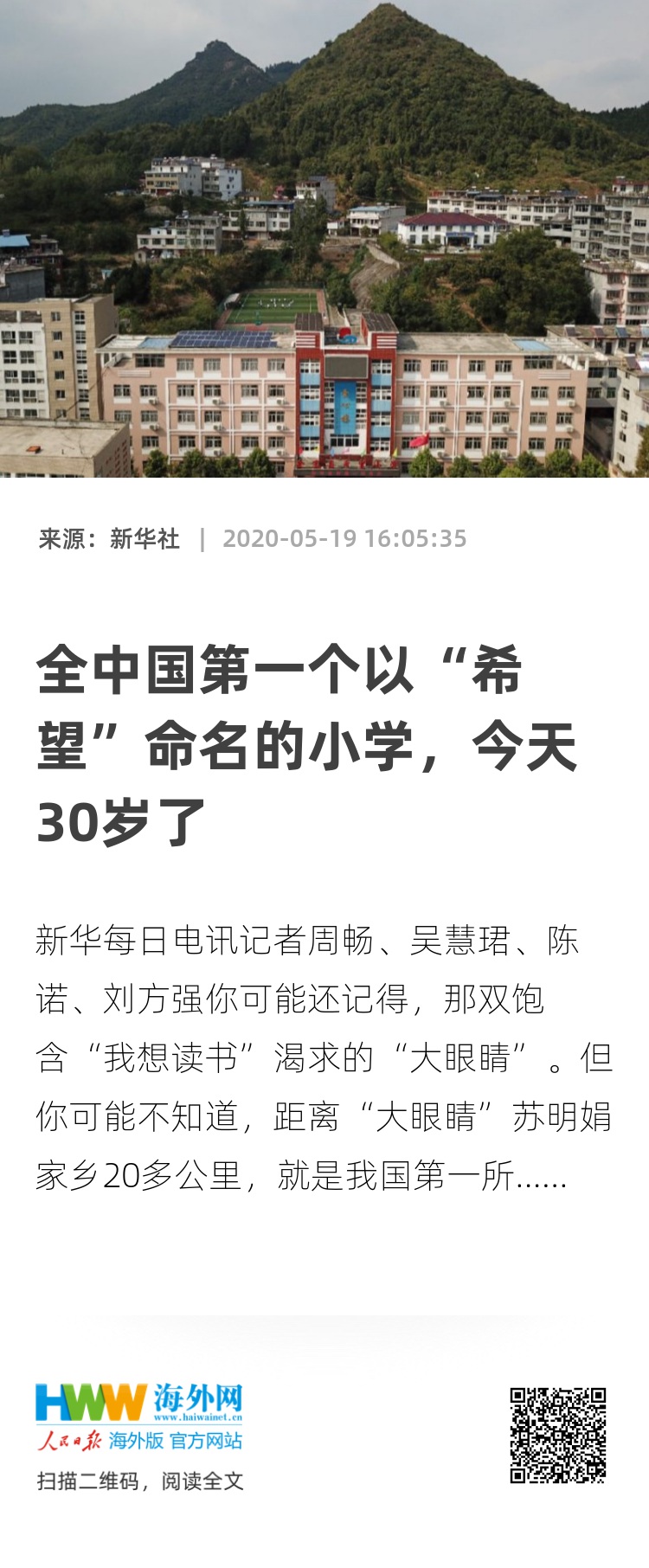 但你可能不知道,距离“大眼睛”苏明娟家乡20多公里,就是我国第一所希望小学的所在地。改变“大眼睛”们命运的希望工程,正是从这里“萌发”。