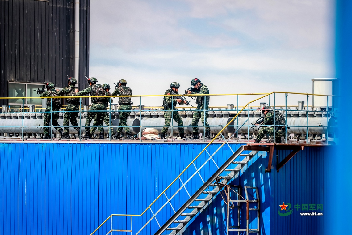 近日,武警青海总队执勤支队紧贴实际,组织特战队员利用街区、天台、废弃工厂复杂场地,开展搜索、掩护、突入等特种战术课目训练,进一步强化特战队员协同作战能力,提高打赢制胜本领。图为搜索前进。杨浩 摄(代绪升 曾涛 杨浩摄影报道)