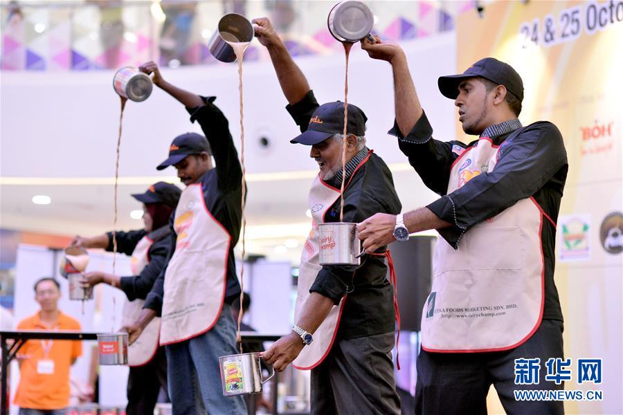 茶是世界三大饮品之一,全球产茶国和地区达60多个,饮茶人口超过20亿。2019年12月,联合国大会宣布将每年5月21日确定为“国际茶日”,以赞美茶叶的经济、社会和文化价值,促进全球农业的可持续发展。 这是2015年10月25日,选手们在马来西亚吉隆坡参加拉茶比赛。拉茶是马来西亚人的日常饮品。 新华社发(张纹综摄)